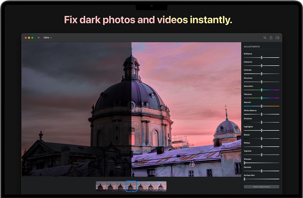 专为Mac打造Brightly Pro专为Mac设计。它在Monterey上看起来很棒,针对新的M1 Mac进行了优化,并支持系统级集成,以便在“照片”应用程序及其他应用程序中处理您的照片和视频。