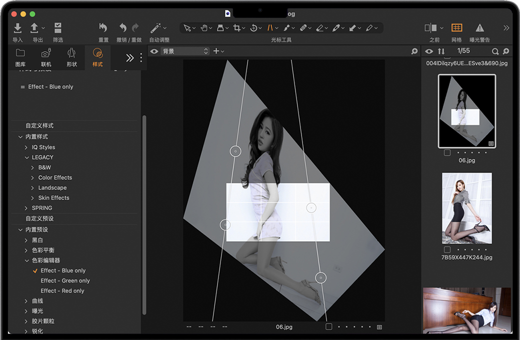 更好地控制编辑,而且您的样式工作流程具有充分的灵活性,能够在风格样式中包含图层。 将编辑内容应用于同一种风格样式中的多个图层,可轻松控制不透明度和实现多样性。 用图层保存您自己的样式,或获取分层版本的 Capture One 风格包。