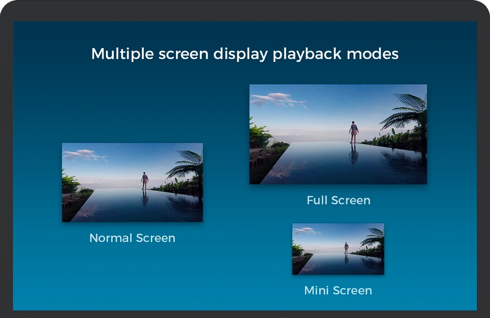*多屏显示回放模式:普通屏、全屏、小屏。