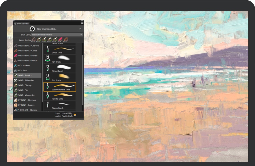 享受增强的厚涂料刷子和兼容厚涂料的新类别的刷子,它们充分利用了堆积涂料的深度,光线和阴影。