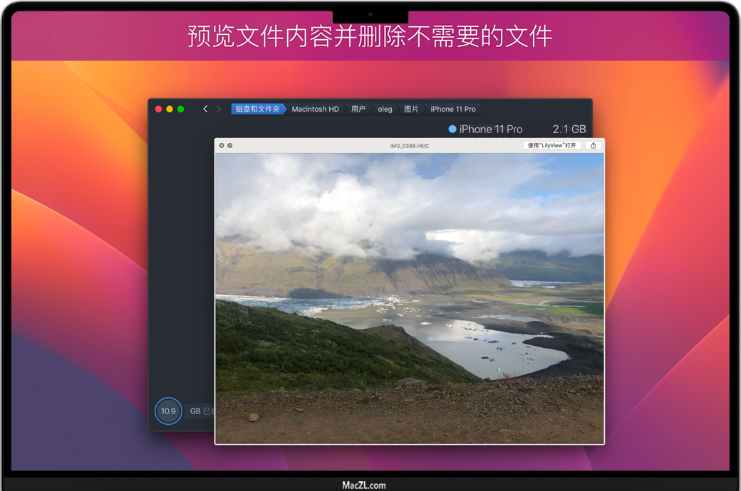 独特的界面设计,使得找出并删除无用且占空间的大文件比以往更加容易。