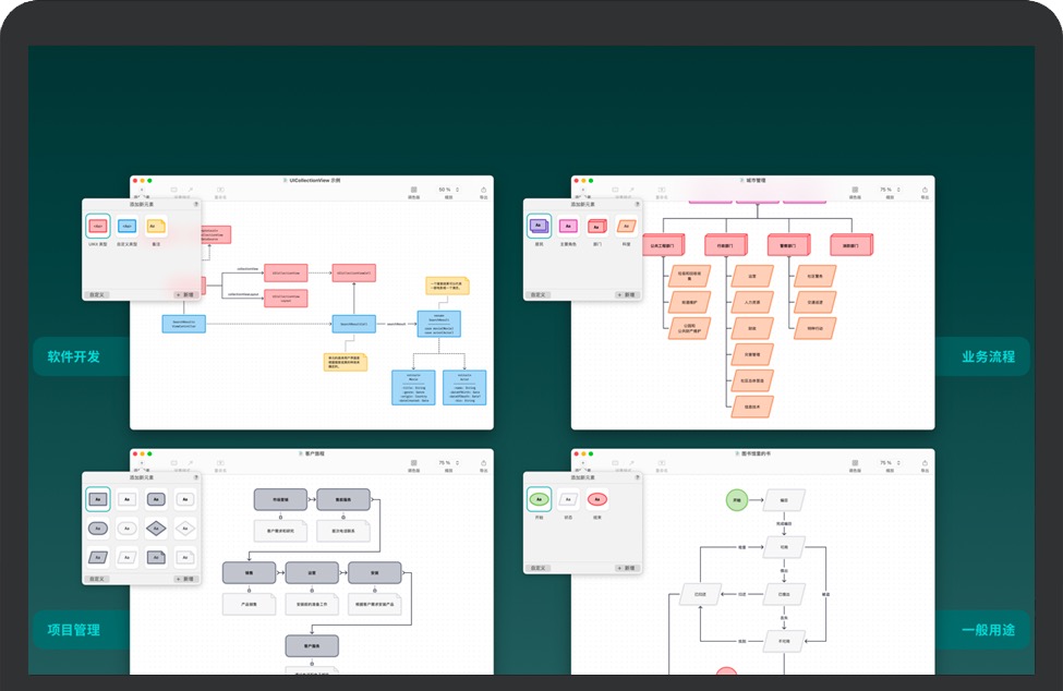 图表的用例数量与您愿意找到的数量一样多。您可以将其应用于从建模软件架构到绘制产品生命周期的任何内容。Diagrams也适用于快速的日常任务,如思维导图——一个完美的显示不告诉工具,可以集成到您的工作流程中。