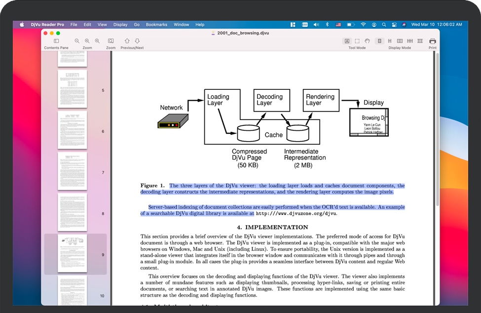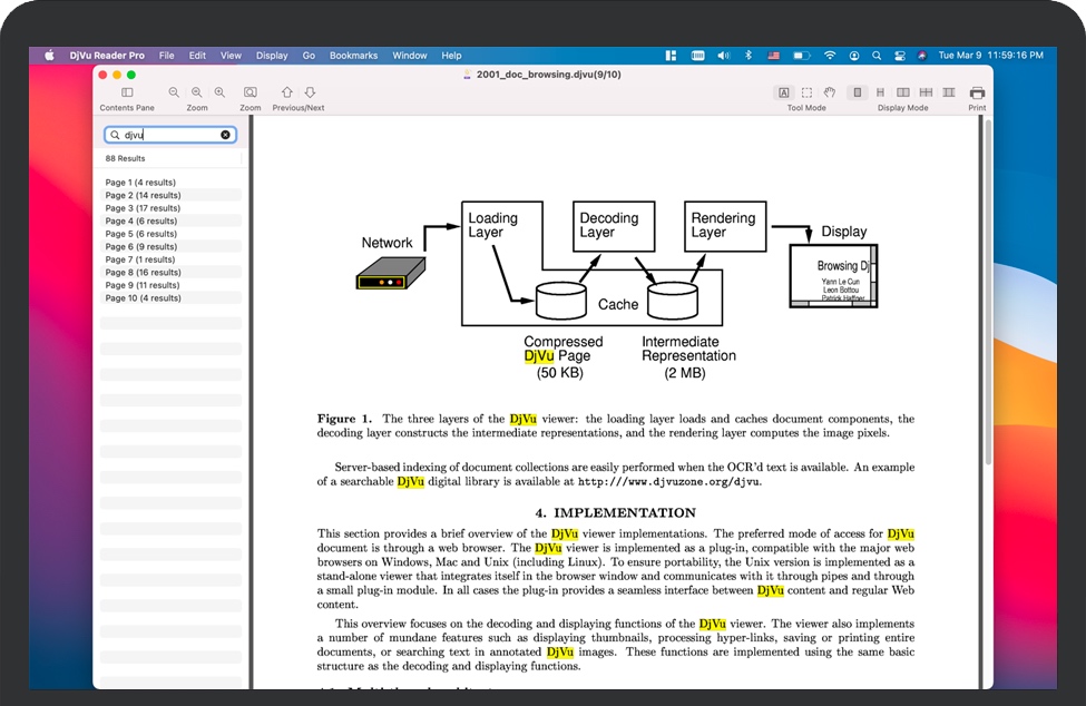 DjVu Reader Pro for Mac 是一款多功能DjVu文档阅读器。使用DjVu Reader Pro三种显示模式,全屏视图,页面缩略图,搜索窗格,查看比例和打印为您提供了绝佳的阅读体验。另外还可以快速地打开大文件、页面缩放、进行文字选择、在文件中搜索给定的内容、导出为PDF,TXT、添加书签、历史记录、旋转等功能。