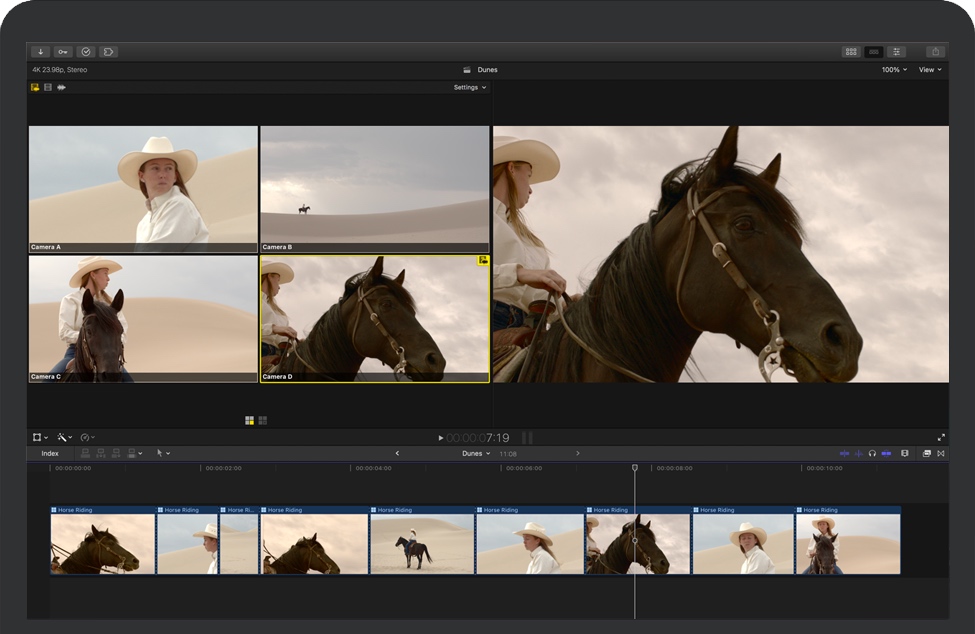 •通过自动同步编辑多机位项目,支持多达 64 个机位角度