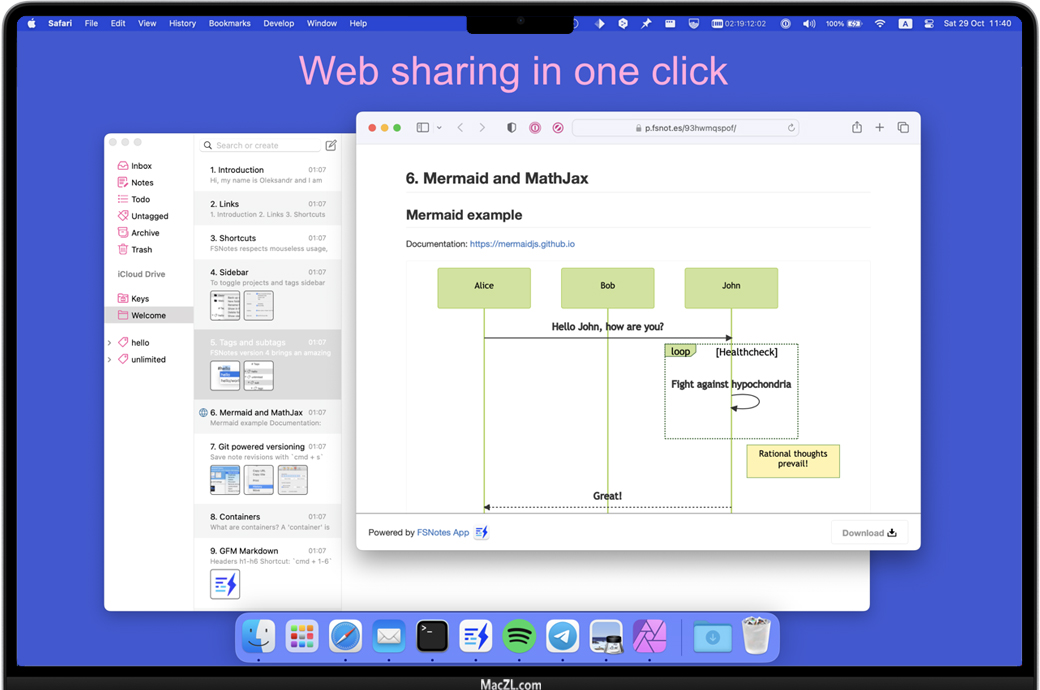 FSNotes for Mac 是一款Mac助理为大家整理的苹果电脑上本地笔记应用,支持markdown、rtf、txt格式,它将数据存储在本地文件系统中而非云端,安全,稳定。在FSNotes应用程序的帮助下,您可以创建和管理大量的笔记数据库,而无需使用鼠标。而且每个FSNotes功能都有一个预先定义的键盘快捷键。