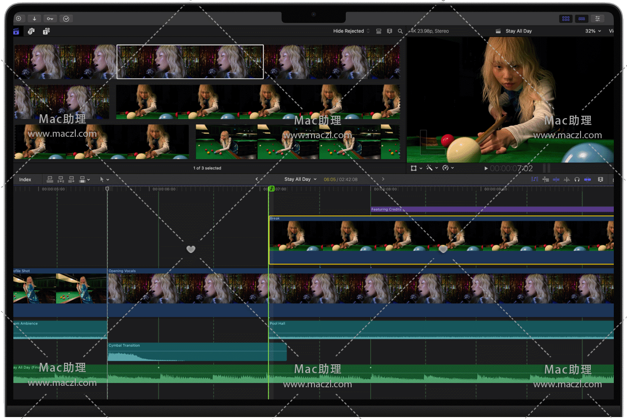 Final Cut Pro 结合了革命性的视频编辑、强大的媒体整理和惊艳的性能表现,让你的创作跟得上思维的速度。