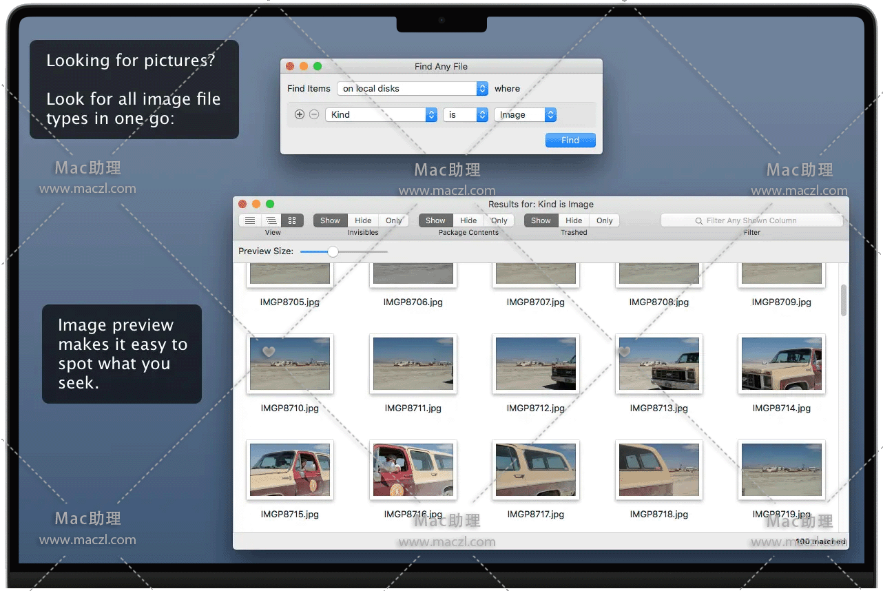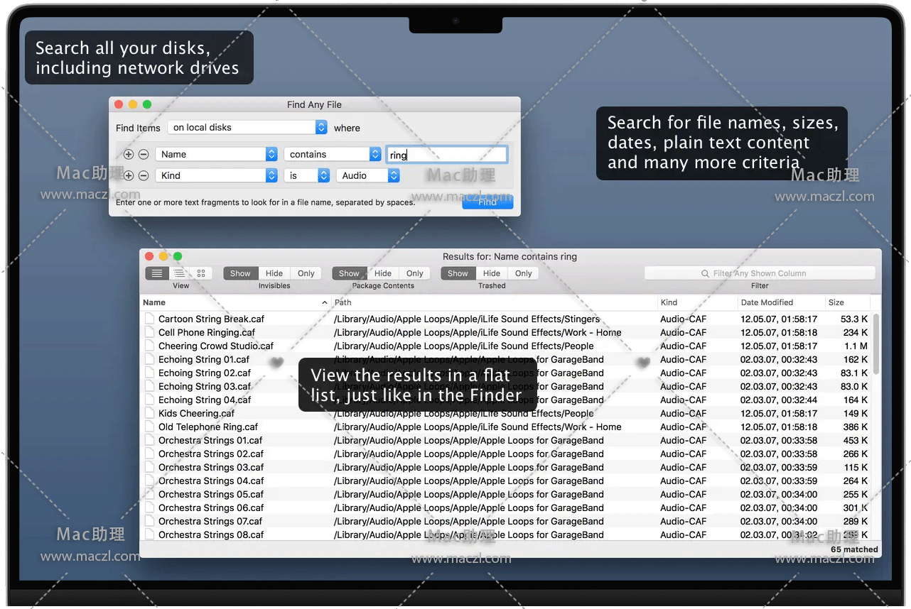 “查找任何文件”可以找到Spotlight无法找到的文件,例如,捆绑包和软件包中的文件以及通常从Spotlight搜索中排除的系统文件夹中的文件。