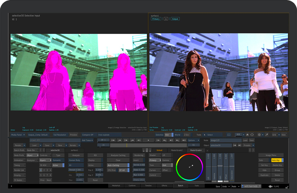 人体和头部提取隔离人体和头部,以对镜头进行快速、迭代的颜色分级和光 FX 处理。 | ![]() |