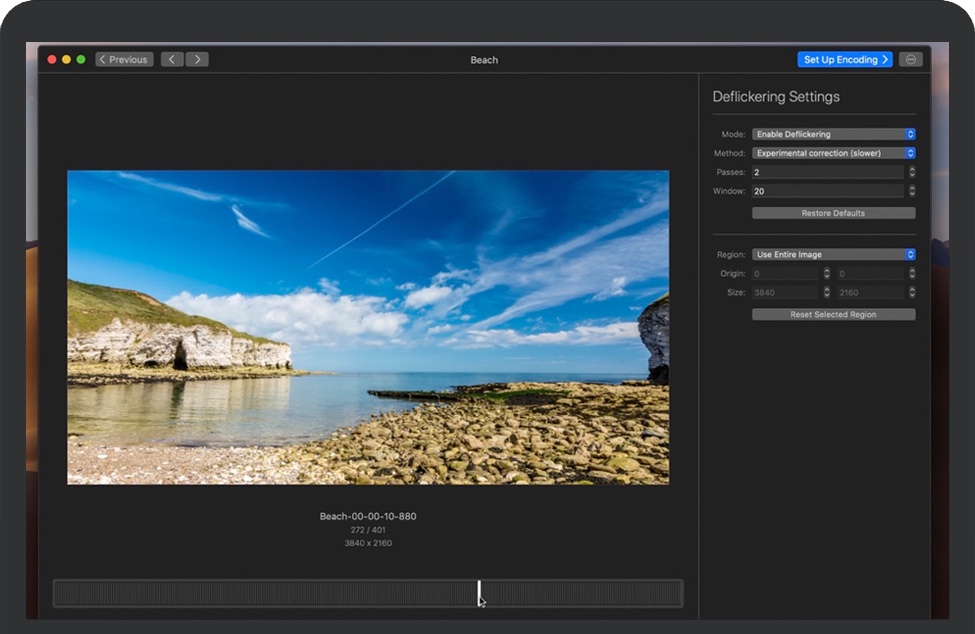按照以下步骤构建您的专业延时摄影。首先导入您的照片,在应用程序中编辑它们,根据需要激活去闪烁,然后选择导出设置。没有什么比这更容易的了。