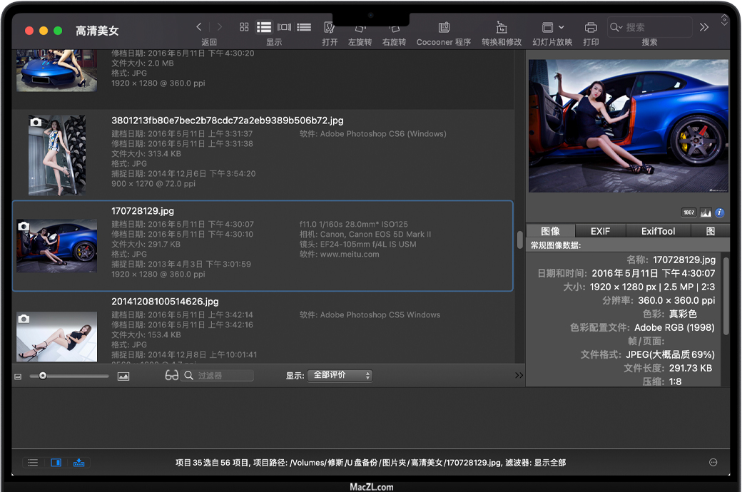 GraphicConverter 12 for Mac 是用于浏览、增强、转换和重命名图像的通用工具。只需将文件夹拖动到GraphicConverter 12上即可查看您的图片。