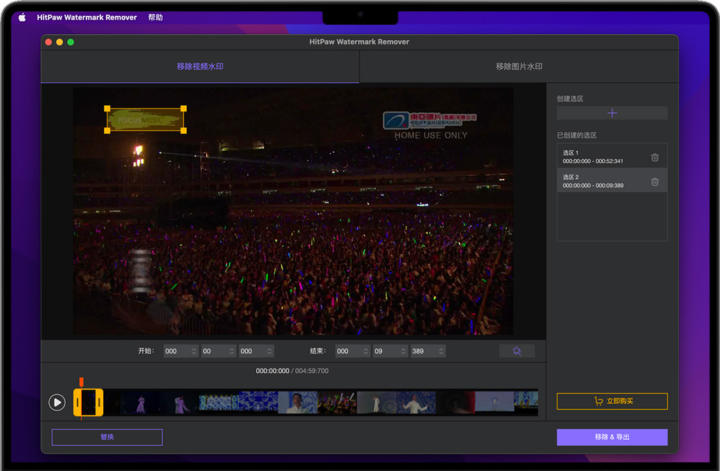 HitPaw Watermark Remover for Mac 是一款易于使用的图像和视频水印删除程序。使用它的三种删除模式和不同的选择工具,您可以轻松干净地从图像中删除游客,浮水印,徽标,文字,建筑、日期、贴纸和其他不需要的对象。此外,您可以使用HitPaw Watermark Remover Mac在几秒钟内删除视频水印。如果您的视频有很多水印,它支持全选,然后一次删除,无需专业的照片影像编辑技术,都可以轻轻松松的让你的照片更完美。