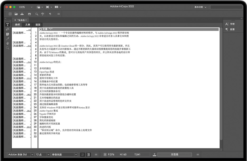 Adobe InCopy 2022 for Mac 是一款专业创建和编辑材料的程序,与Adobe InDesign 2022程序密切关联,以改善设计团队和编辑之间的互动。Adobe InCopy 2022非常适合许多人从事文本和图形设计的大型项目。InCopy非常适合涉及书面复制和设计工作的大型团队项目,为撰稿人和编辑人员提供了一个强大的工具来设置文本样式,通过跟踪更改进行协作,并进行简单的布局修改。
