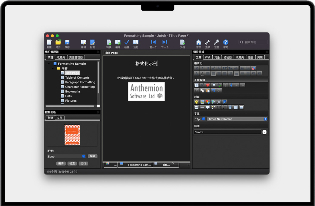 与使用文字处理器文件相比,您还可以获得更大的范围来创建专业结果;Jutoh的工具会提醒您注意问题,并允许您进行传统文字处理器和简单文件转换无法提供的改进。