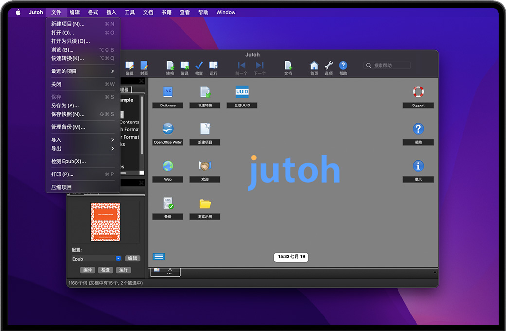 Jutoh for Mac 是一款在macOS系统行创建、编辑高质量的小说和非小说类电子书应用软件,同时您还可以将Jutoh当作是数字出版助手来使用。使用新建项目向导在几秒钟内从现有文件创建您的项目;或使用内置样式的文本编辑器从头开始创建您的书。Jutoh 可让您快速开始创建电子书,但具有大量功能和配置以供更高级的使用,包括对内容、索引和尾注页面的支持。