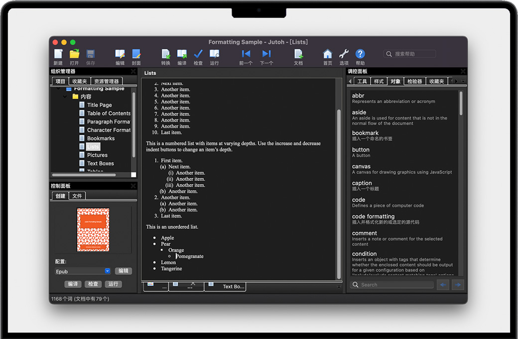 Jutoh 是用 C++ 编写的,因此运行速度极快 - 没有令人沮丧的延迟。
