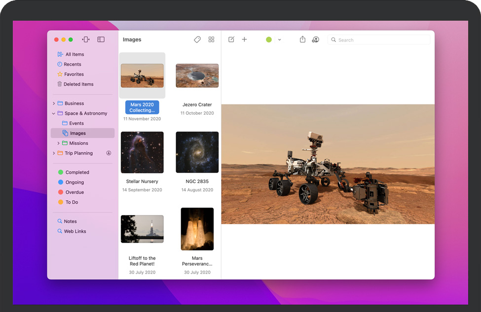 标签使用标签对项目进行颜色编码,以便快速进行视觉识别。标签列在边栏中,因此您可以快速查看带有特定标签的所有内容。 |