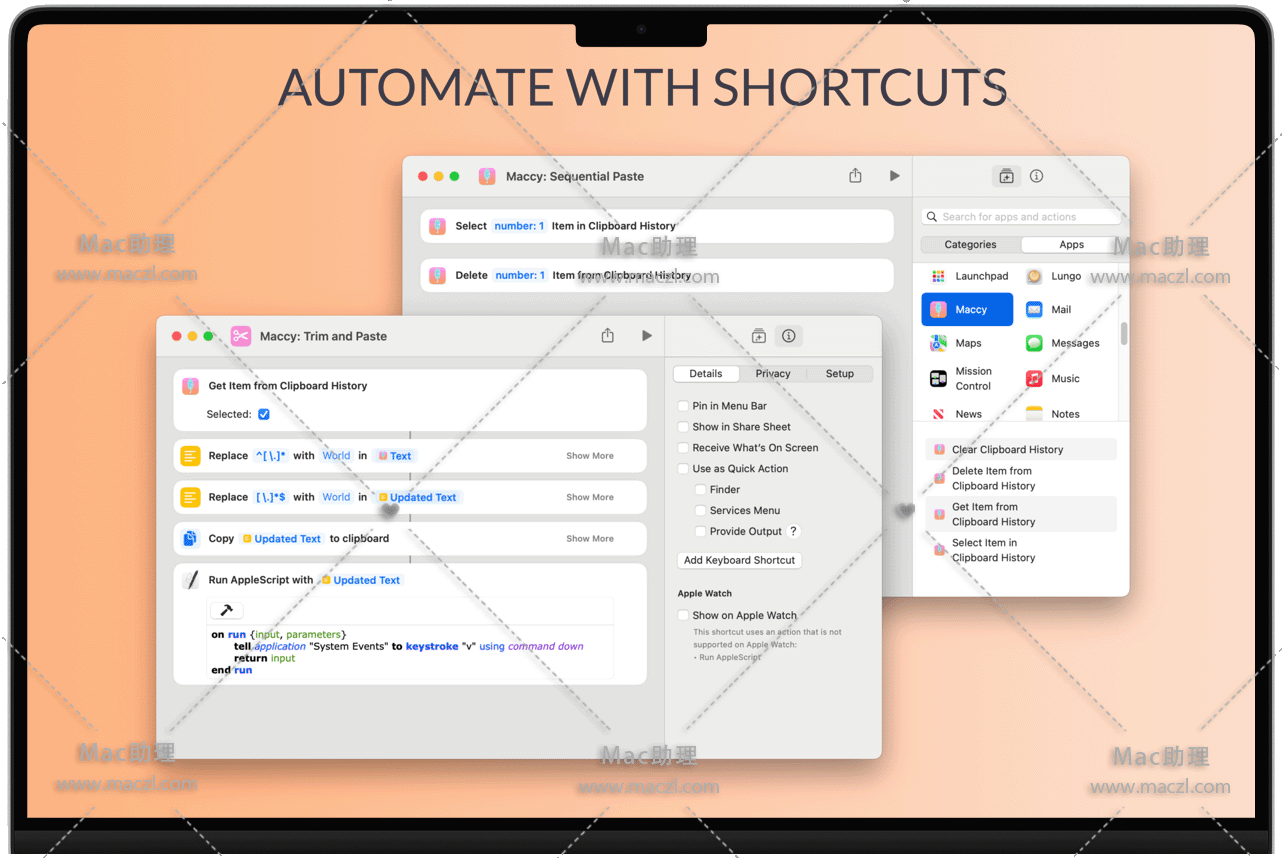安全与隐私Maccy尊重您的隐私。如果您的密码管理器从剪贴板中删除了已复制的密码,Maccy也会删除。所有数据都存储在您的计算机上。 |