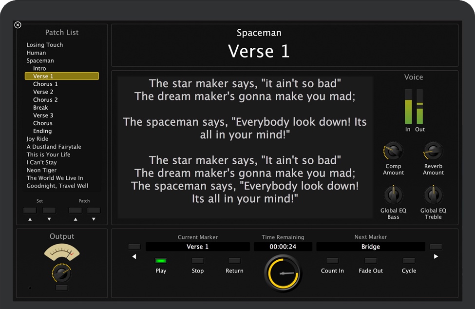 MainStage for Mac 是一款很棒的音乐人的现场演出必备软件。MainStage可让您专注于您的演奏。使用脚踏板控制您添加到声音中的效果,让您的双手解放出来。并在屏幕上显示大的、高对比度的音符,例如歌词和和弦变化。现在,将你的 Mac 变身现场演出装备。凭借不计其数的各种插件和音效选择,你可以让键盘、吉他或演唱表现令观众耳目一新,难以忘怀。