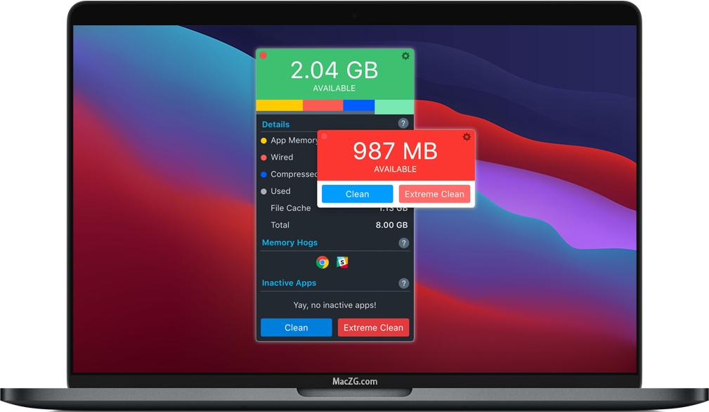 该应用程序通过清除Mac的非活动内存来工作,最好在关闭不再需要使用的内存占用应用程序后使用。通过释放不必要的内存,您可以为其他应用程序提供更多的可用内存。