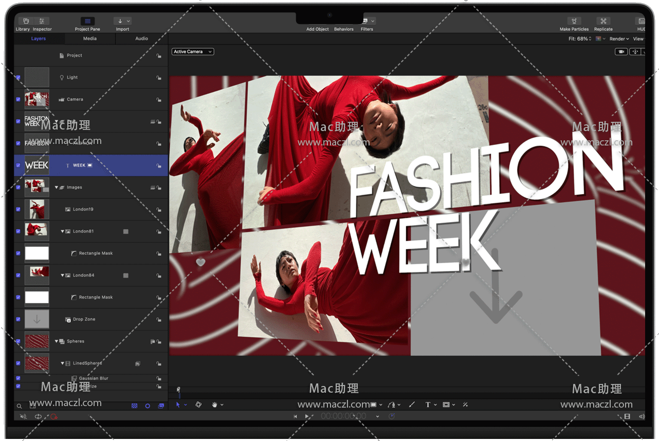导入第三方 USDZ 对象或从 Motion 资源库 60 种预先制作的对象择一使用