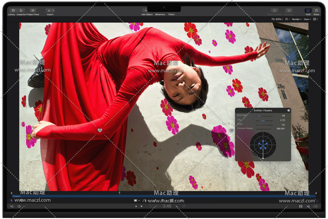 - 设计你自己的粒子发射器或者从 200 种真实效果(如烟雾和火花)预置中进行选择