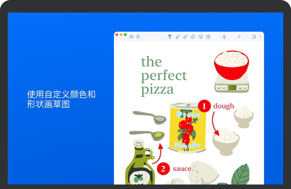 放大细节,或通过结合草图、轮廓和类型来探索大局。现在您可以通过 Google Drive、AirDrop、电子邮件和 Dropbox 与同事或学习伙伴分享您的笔记。