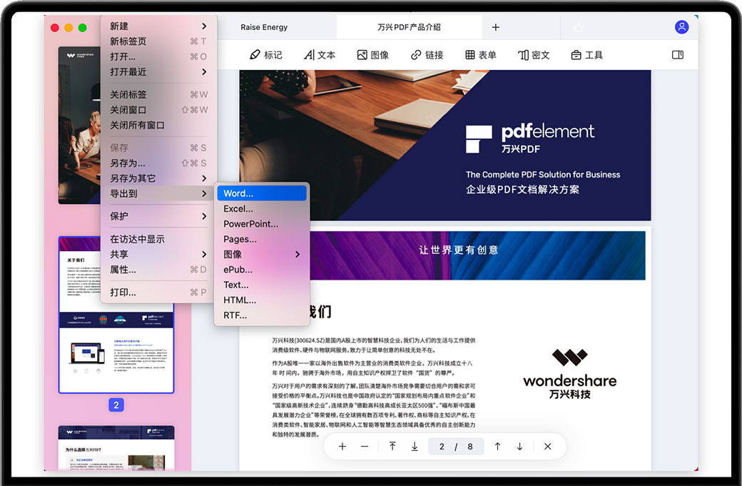 Wondershare PDFelement for Mac中文名叫做万兴PDF是一款适用于macOS的综合PDF工具,PDFelement Pro您可以批量创建、转换、合并、加密、打印和 OCR PDF,轻松注释、编辑、组织、压缩、比较和签署PDF文档。