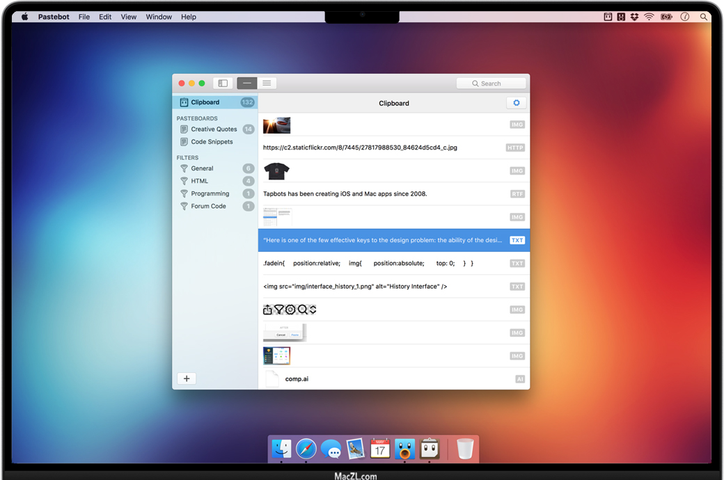 Pastebot会保存您复制的所有内容,以便您将来可以快速调用它们。将常用剪辑保存并组织到自定义粘贴板上,并创建键盘快捷方式以访问粘贴板并粘贴特定剪辑。