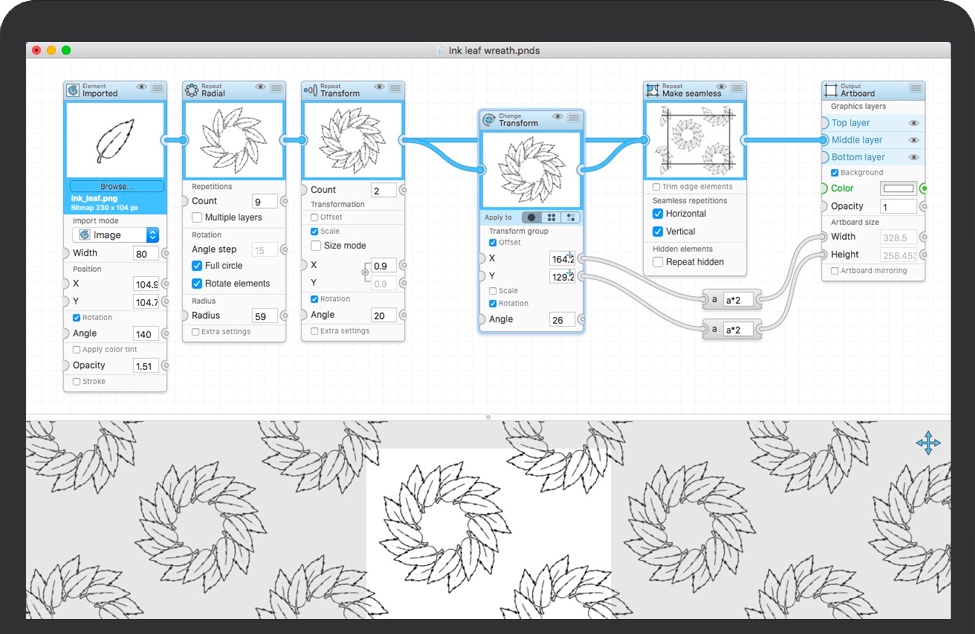 从一开始就设计Patternodes,以激发好玩的使用和实验。因此,结果始终显示在预览视图中,并重复进行模式和实时更新。