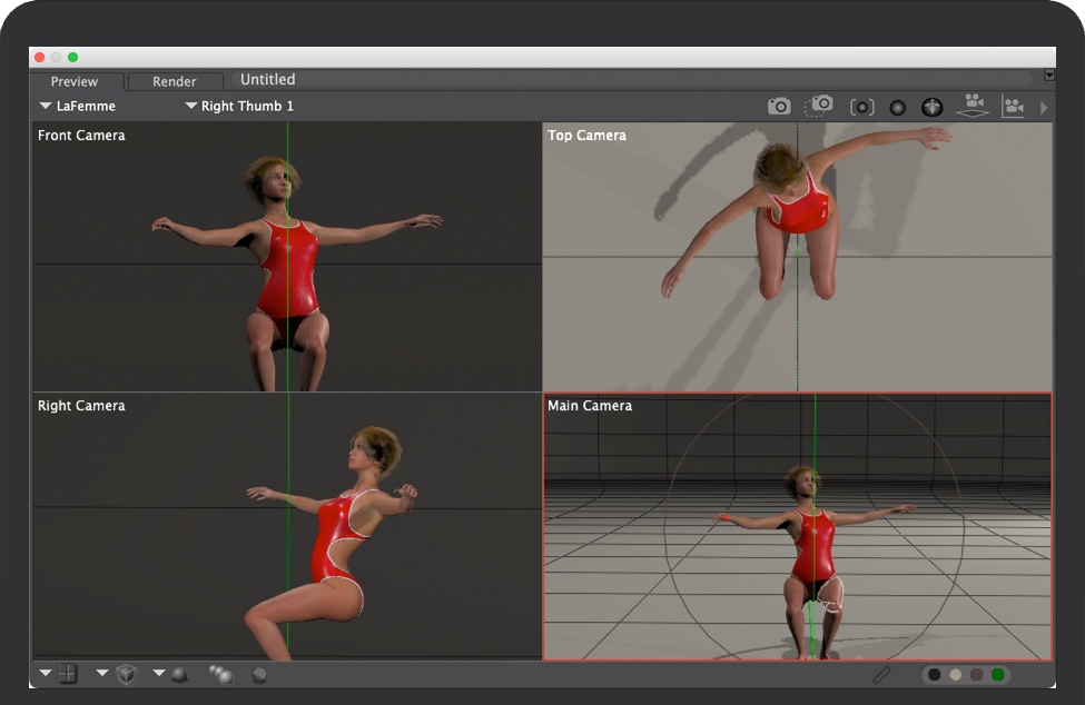 Poser 强大的照明和渲染工具可提供高质量的艺术效果。使用自然光、阴影、次表面散射创建逼真的皮肤、焦散和体积的烟雾、雾和云效果的渲染。以多种风格自定义您的最终输出,包括照片写实、素描、卡通、剪影、实时漫画书模式等。