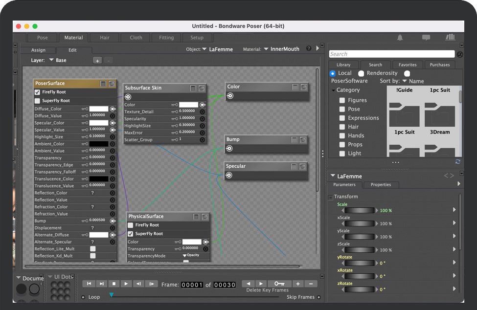 Poser 的动画工具可帮助您创建令人惊叹、逼真的动画,而无需执行人物动画制作过程中的大量重复工作。Poser 包括自动关键帧创建、非线性动画、口型同步和步行模拟器,以简化动画过程。