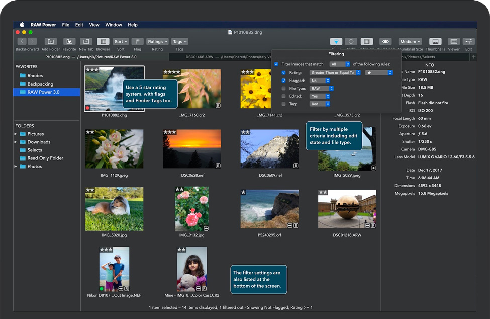 RAW Power® 是所有非 Apple 照片应用中与“访达”、“照片”和 iCloud 集成度最好的一款,而且还提供先进的 RAW 编辑和评级等众多功能。