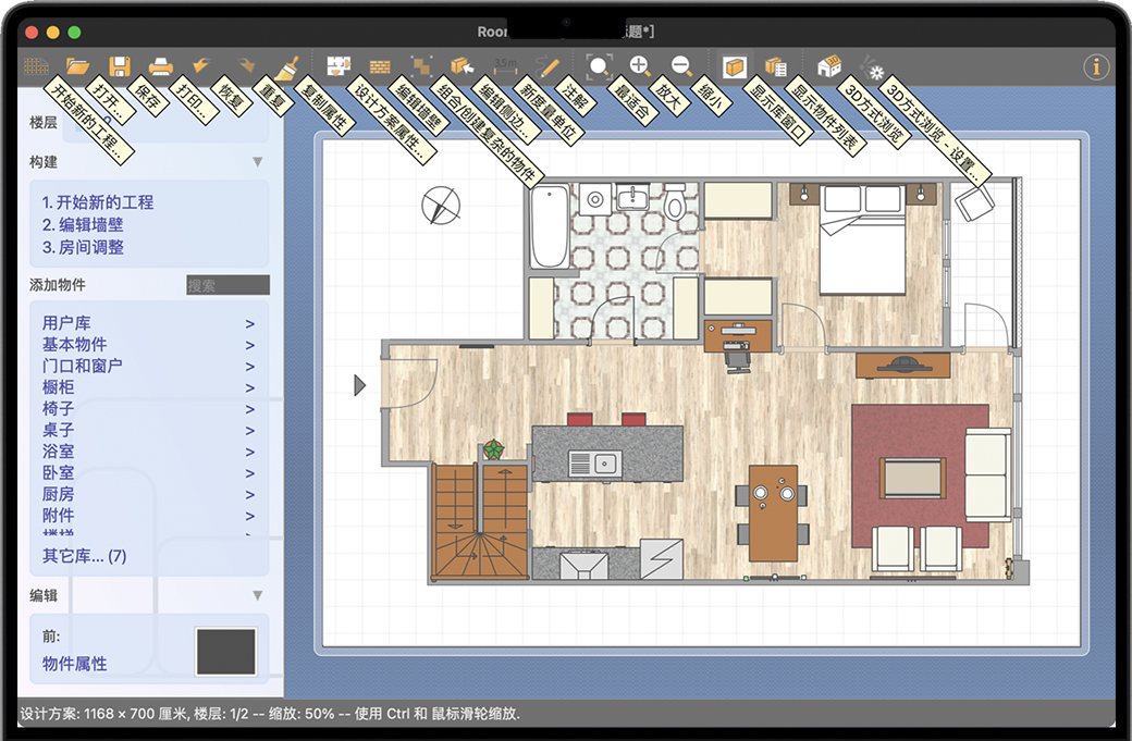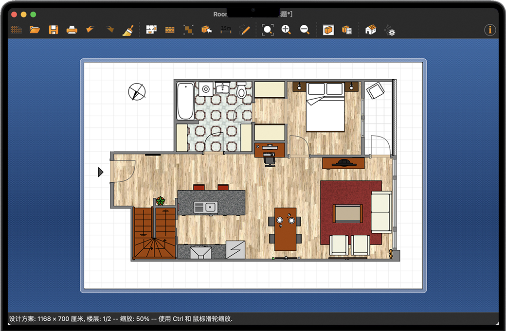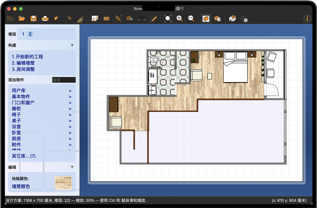 Room Arranger是一个简易轻巧的软件. 然而它却仍能让您能完成近乎一切想像中的设计。在您了解基础操作后,将很容易的晋升至更高阶的程度。