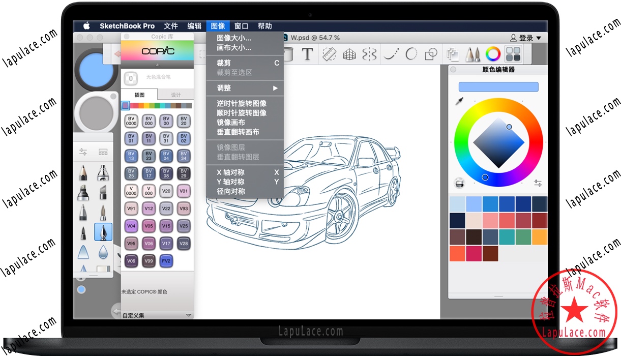 铅笔、墨水、马克笔、还有超过190种可定制的可以组合质感和形状的画刷。额外奖励:专插画师们挚爱的Copic® Color Library。