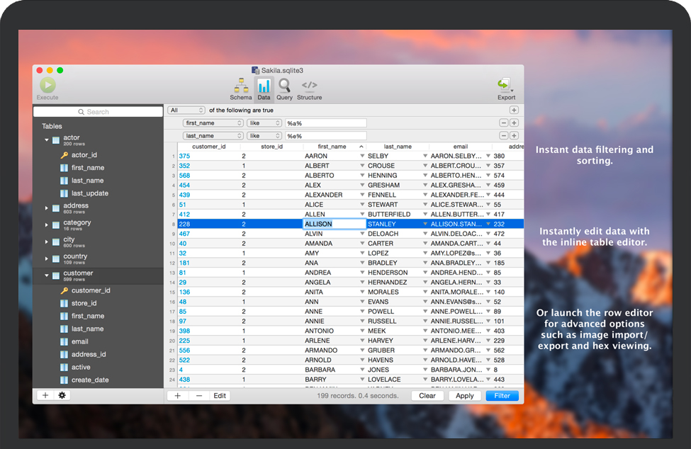 SQLPro for SQLite 是一款简单,功能强大的SQLite管理器。SQLPro for SQLite也是是高级的sqlite编辑器。它具有易于浏览的界面,能够执行从最基本到最高级的任务。