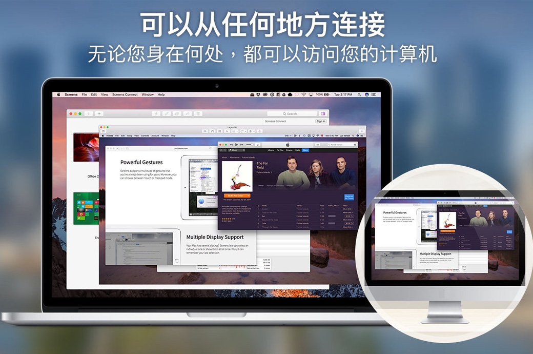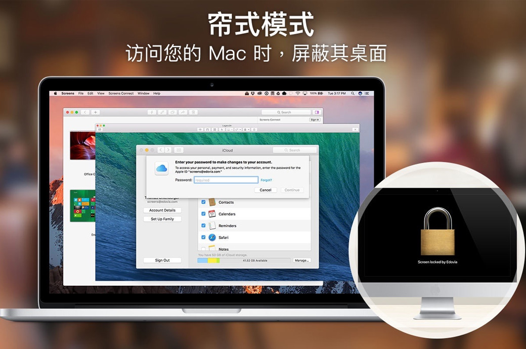 Screens Connect 需要 OS X 10.6.8 Snow Leopard 或更新版本。您将需要创建免费的 Screens ID。