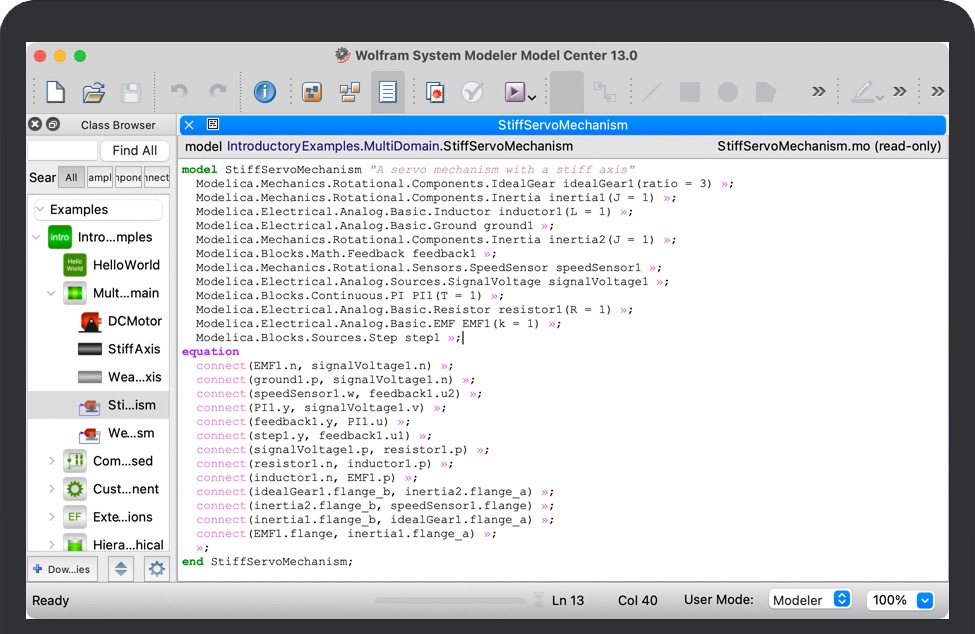 System Modeler 是最完整的物理建模与仿真工具。System Modeler 不需要附加软件,且完全支持 Modelica 模型语言。此外 System Modeler 为与 Wolfram 语言完美连接而设计,从而实现建模、仿真和分析流程的终极整合。