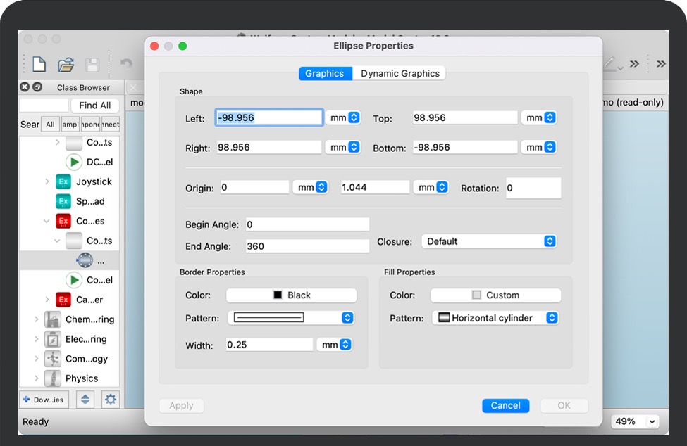 通过物理方程或连接网络中的模型,用 Wolfram 语言进行程序式建模。使用脚本代码或用 Wolfram 语言设置自定义动态界面对您的模型进行配置。