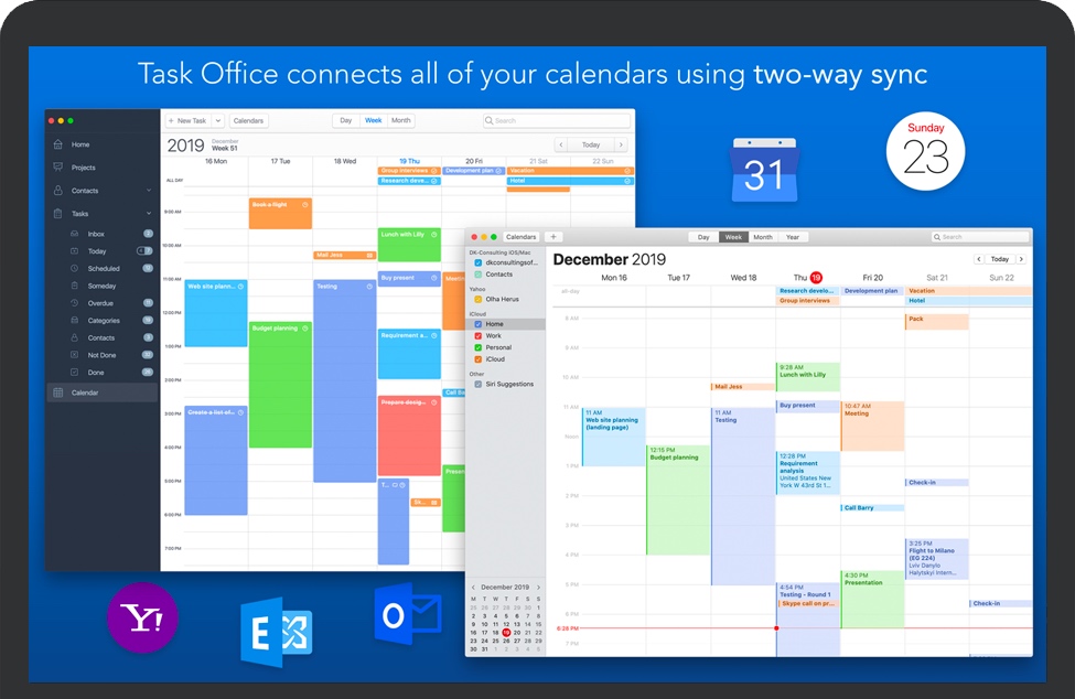 •使用日历同步(iCloud,Google Calendar,Exchange,Yahoo,Outlook)Task Office,这样您不会错过任何东西