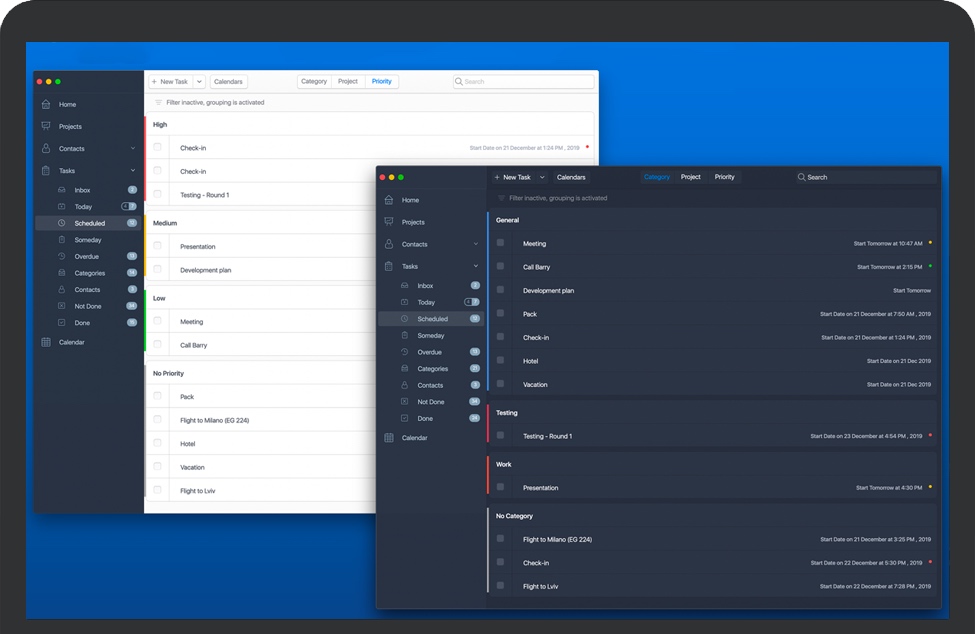 Task Office for Mac 是一款专为macOS平台设计的任务管理和日历软件。待办事项,待办列表,项目,联系人管理尽在Task Office。Task Office帮助您进行业务规划,日程安排,并且让做事变得更有效率。Task Office使您的计划变得更加清晰,更易达成。不管是简单的还是复杂的项目,待办事项都将没有任何困难地帮您解决,除此之外,还会帮助您保持注意力直到最终的结果达成。