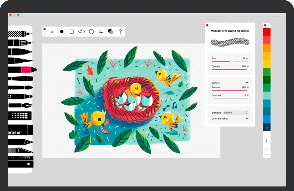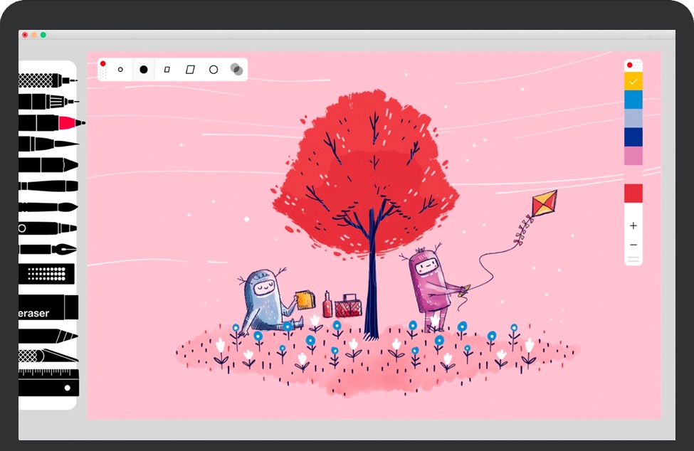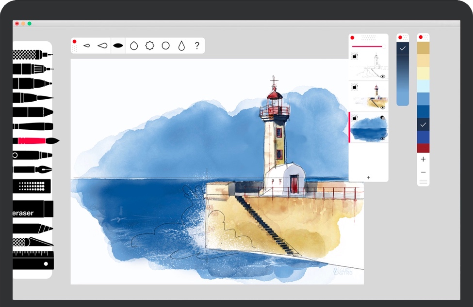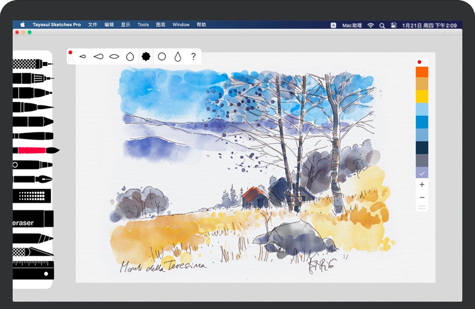 Tayasui Sketches Pro for Mac 是一款强大的绘图程序,可以帮您绘制漂亮的图画,我们坚持不懈地努力,不断改进 Sketches 画笔,给您带来最逼真的绘图和绘画工具。20 多款超真实的工具,极其真实的水彩湿画笔,智能画笔编辑器,颜色拾色器,导入照片,支持手写笔,Sketches 界面在设计时充分考虑了手写笔的需求,所有工具都支持压力,Sketches Pro支持导出为 psd 文件,是 Mac 上功能最全面且非常易于使用的绘图应用。