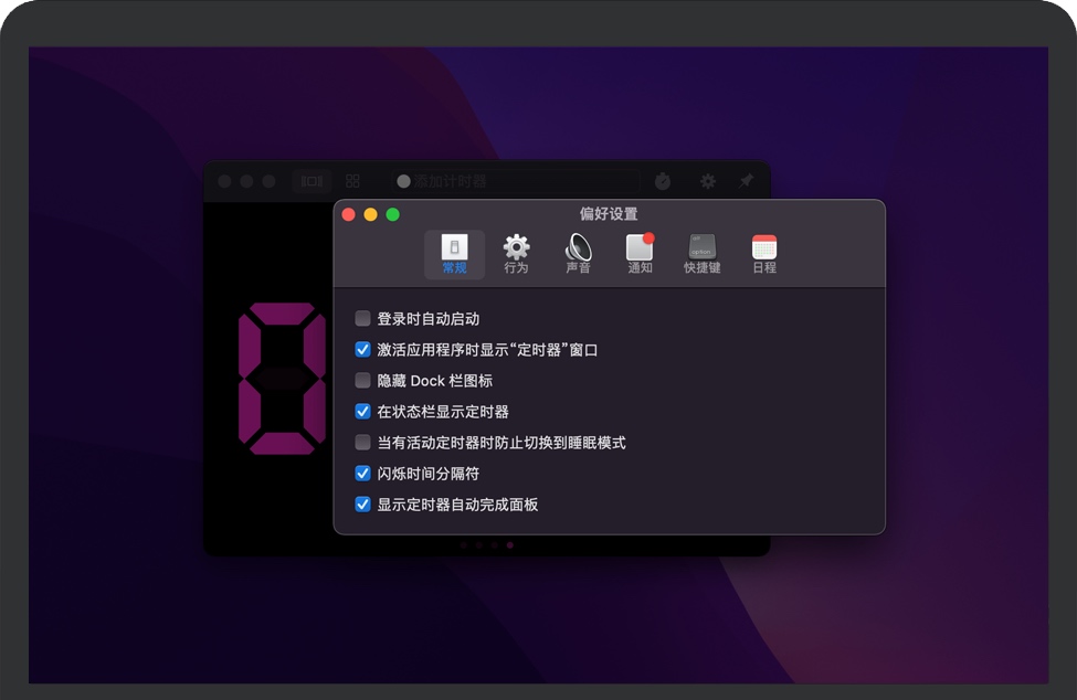 如果您想在 Dock 中的应用程序图标上看到带有过期计时器数量的图标,请激活。