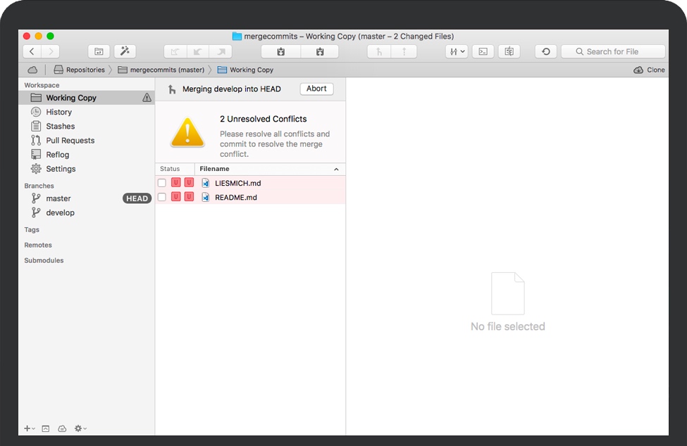 简单的任务很容易在命令行上执行。然而,其他的在 GUI 中要容易得多——比如可视化提交历史或合并冲突、访问文件历史或暂存单行代码。这不是“非此即彼”:Tower 和命令行是绝配!
