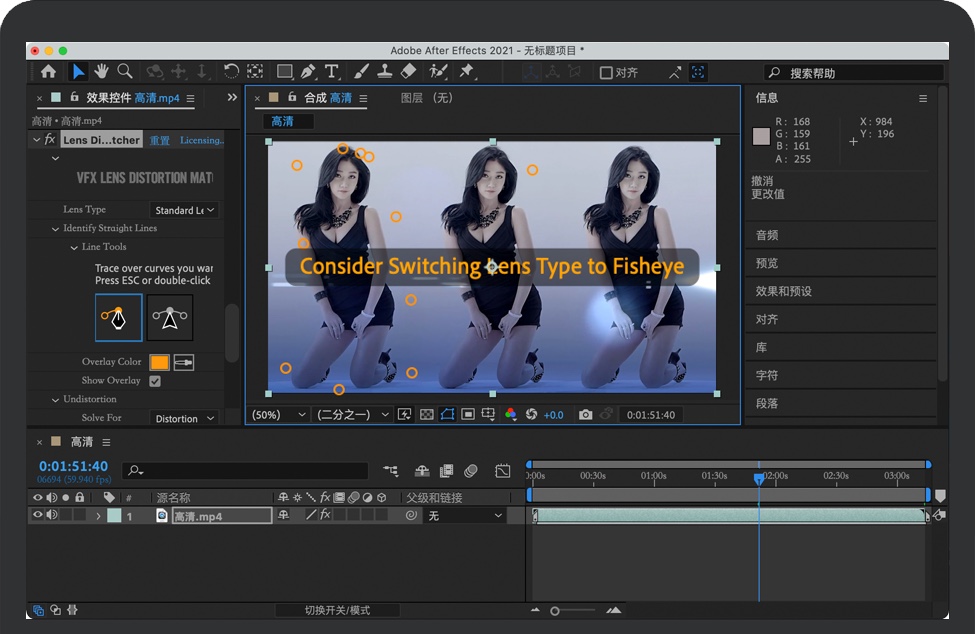 Lens Distortion Matcher可以让你非常轻松地对任何镜头进行解构,这样你就可以将元素合成到你的镜头中。即使你不知道是哪种镜头——广角、GoPro、鱼眼或其他什么镜头,Lens Distortion Matcher也能立即计算出来。
