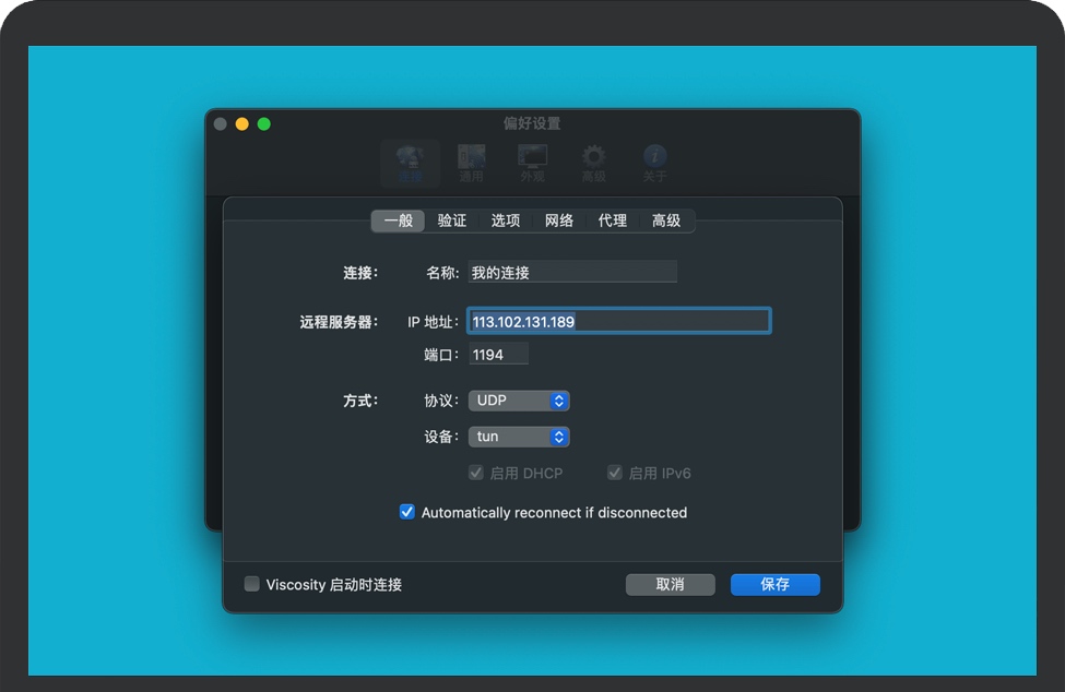 Viscosity提供了丰富的Cocoa图形用户界面,用于创建、编辑和控制VPN连接。Viscosity主要针对VPN新手。它允许通过GUI完全配置连接,无需知道如何使用命令行或 OpenVPN 的配置文件语法。