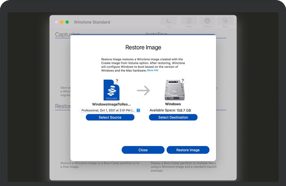 Winclone for Mac 是一款可满足您的 Bootcamp 备份、恢复和分区大小调整需求的应用。Winclone 10可以轻松创建整个 Boot Camp分区的完整映像,包括文件、程序和Windows系统。如果您需要快速恢复到那个确切状态,只需恢复映像,您的Boot Camp分区将与您拍摄映像时完全相同。