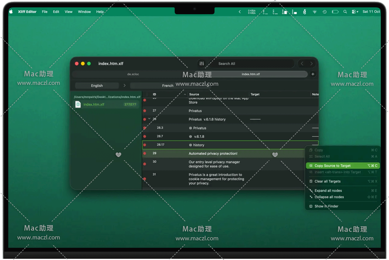 原生 macOS 代码Xliff Editor 是 macOS 上的顶级编辑器,速度极快!它采用 macOS 原生 API 构建,因此您可以放心,Xliff Editor 的运行完全符合您的预期。文件复制、撤销支持和内置拼写检查器等功能一应俱全! |