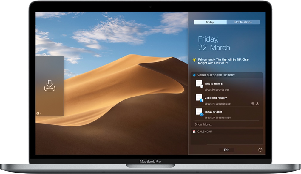 Yoink for Mac 是一款临时文件拖放暂存储的实用程序,可将文件、应用程序和任何可以拖放到目的地的内容移动。Yoink就像一个架子,您可以在其中一个一个或成批地放置文件,然后将它们发送到计算机上的任何位置。Yoink还提供系统服务、快速操作、共享扩展、Handoff和Continuity Camera集成,可以与终端和Automator一起使用,并且可以保留您的历史记录剪贴板。