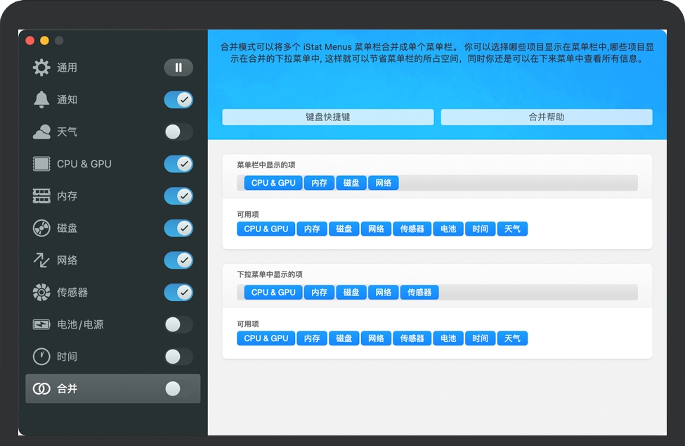 iStat Menus for Mac 是一款macOS状态栏菜单的系统活动监控器,可以帮助您轻松监控系统活动和资源使用情况。您可以及时查看分析您的CPU和GPU,内存,磁盘,网络,传感器,电池或时间,别外还支持在mac的任务栏显示天气,iStat Menus 是用于监控系统状态的不二之选,装机必备。