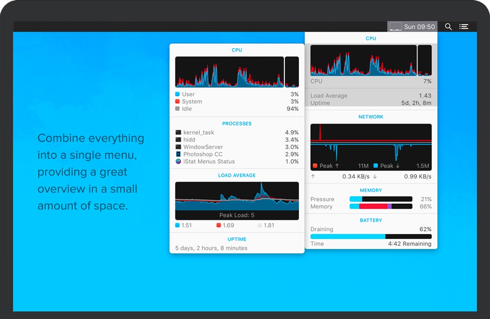 新的iStat菜单小部件是将Mac的重要统计信息隐藏在Notification Center中的好方法。CPU使用率,内存,顶级CPU和内存进程,平均负载,磁盘空间和正常运行时间都只需单击或滑动任何应用程序即可。